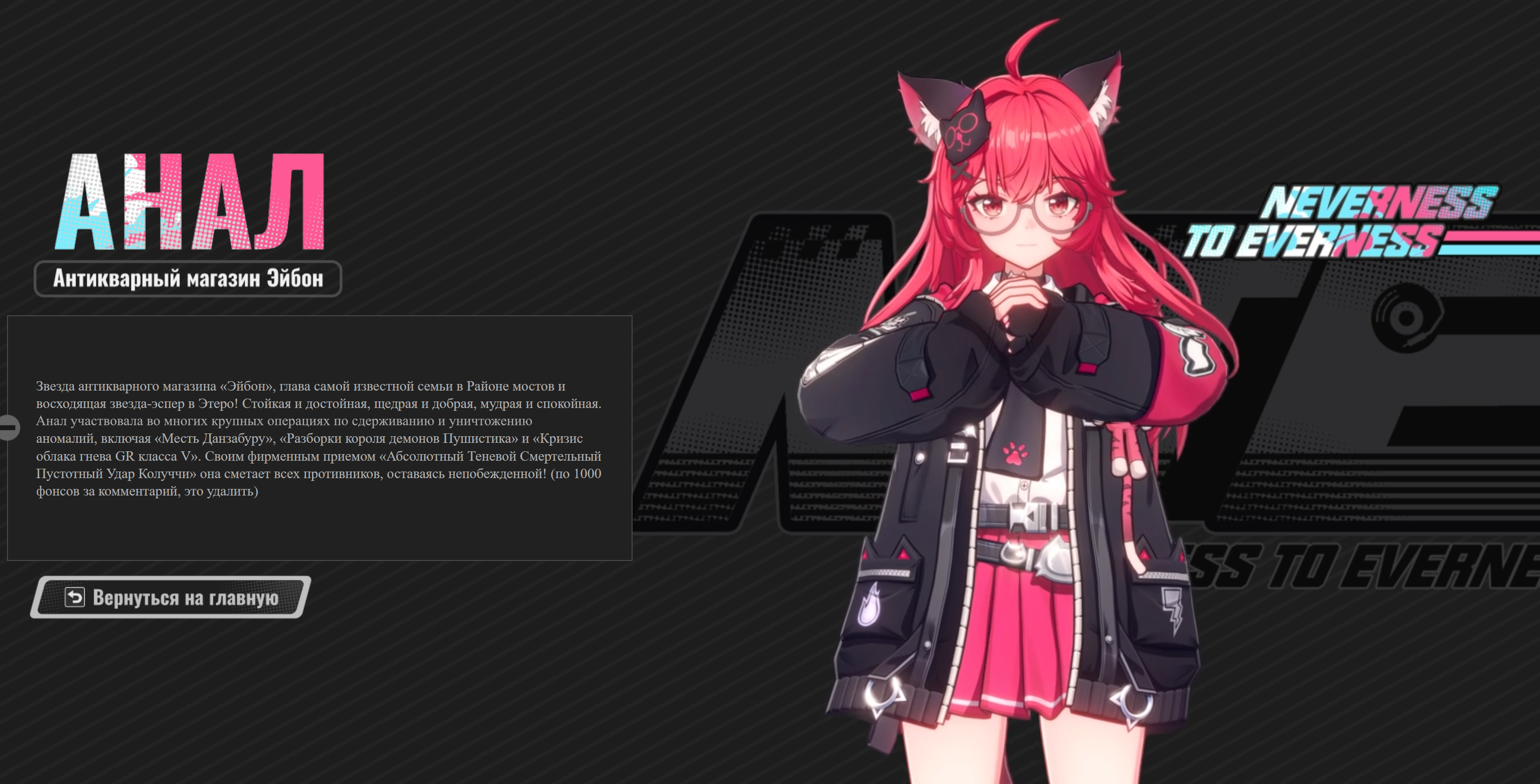 Как можно было с квеста волка тронуться. Джованни буквально по голосу и действиям как крыса себя вёл с самого момента встречи, так он еще и выглядел как обычный брейкер. В первые минуты квеста уже было понятно что он хуйло и злодей. Тата хуйня без души просто эмоджи спамил и взорвался. Ультрарофлс квест, а попытка давить на этом в квесте розового унитаза выглядела еще смешнее. Хррр Тьфу в ебало тем кто это писал. Бабуле уже возраст поджимал, она сама в тот мир хотела еще и альцгеймер долбил нормально так, че её жалеть не понимаю. Вы какие-то долбоёбы.
