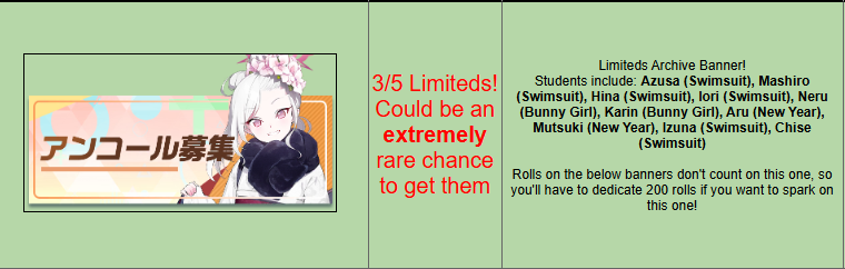 >>6557278 Старые лимитки теперь в отдельный баннер вынесены как и первые юбилейки, остальные реранятся по расписанию +/- через год, но тк глобал периодически ускоряется, то некоторые ивенты у нас могут запустить пораньше, а некоторые баннеры объединить. Так что проще ориентироваться на ЖП, когда у них выходит баннер, и оттуда считать примерно 4 месяца.