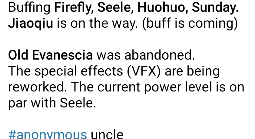 добавлю капельку копиума - бафают инвалидов когда на горизонте маячит какая-то лимитная замена, а значит к Ахерон просто убежит какой-нибудь крутой нигилист. Например Нигилюкса