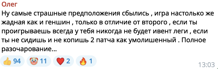 >>6561832 терпеть нихуя не буду, уже третий месяц кал жрут а обещалки только множатся. обратная связь они получили, ага, и дальше фидбэк в жопу засунут как обычно. если в 1.3 не выкатят мясо а не патчи с багами - то нахуй эту енфилд, полно других гач с норм дропом без ожидания апокалипсиса.
