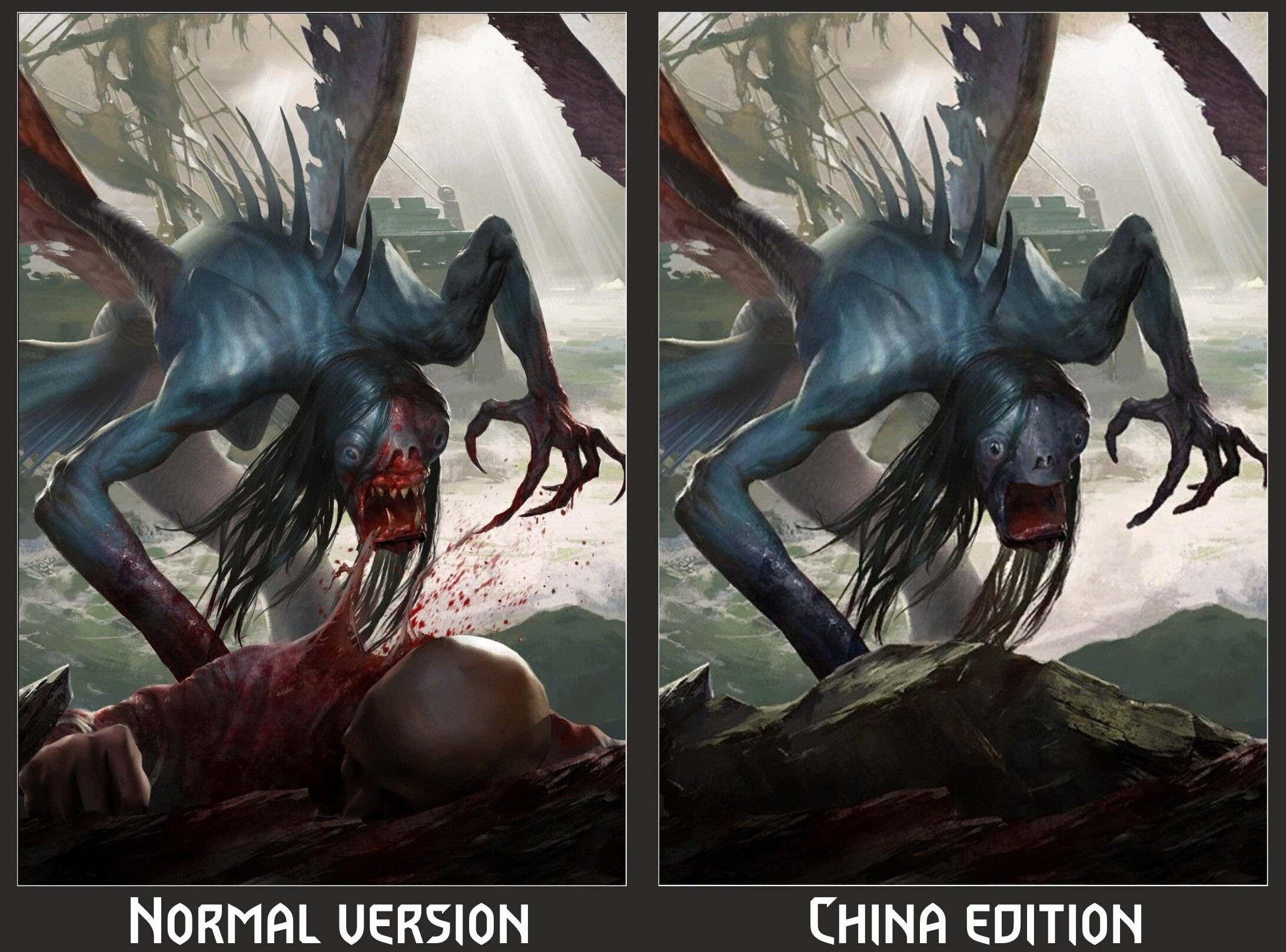>>6567411 У них вроде в Китае запрещено показывать, рисовать открытые раны, кости, кровь и всё такое. Хз правда как они это всё равно в других местах делают.