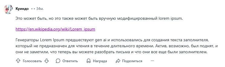 >>6567595 Лорем ипсум это вырезки текста из произведений на латинице, текст не должно расхуяривать и делать из него бессвязное месиво. Какой нахуй вручную модифицированный? Что автор комментария вообще высрал? Видно что нейронка пыталась написать текст на английском но обосралась и всем было похуй, ведь так сложно просто сгенерить фон и поверх реальный лорум ипсум ебануть, а еще лучше и тайпфейс поменять на тот который в трейлерах используют чтобы никто не обижался что используют китайский/английский. Это просто халтура ебучая, хотя дел было на пару минут. Просто напомню, игру делали больше пяти лет.