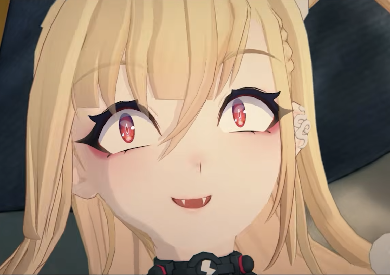 Ошейник с цепями вызывает некоторые подозрения в добровольности. А ободок с фигурками людей, кстати, может отсылать к шикигами и местной Японии кстати.