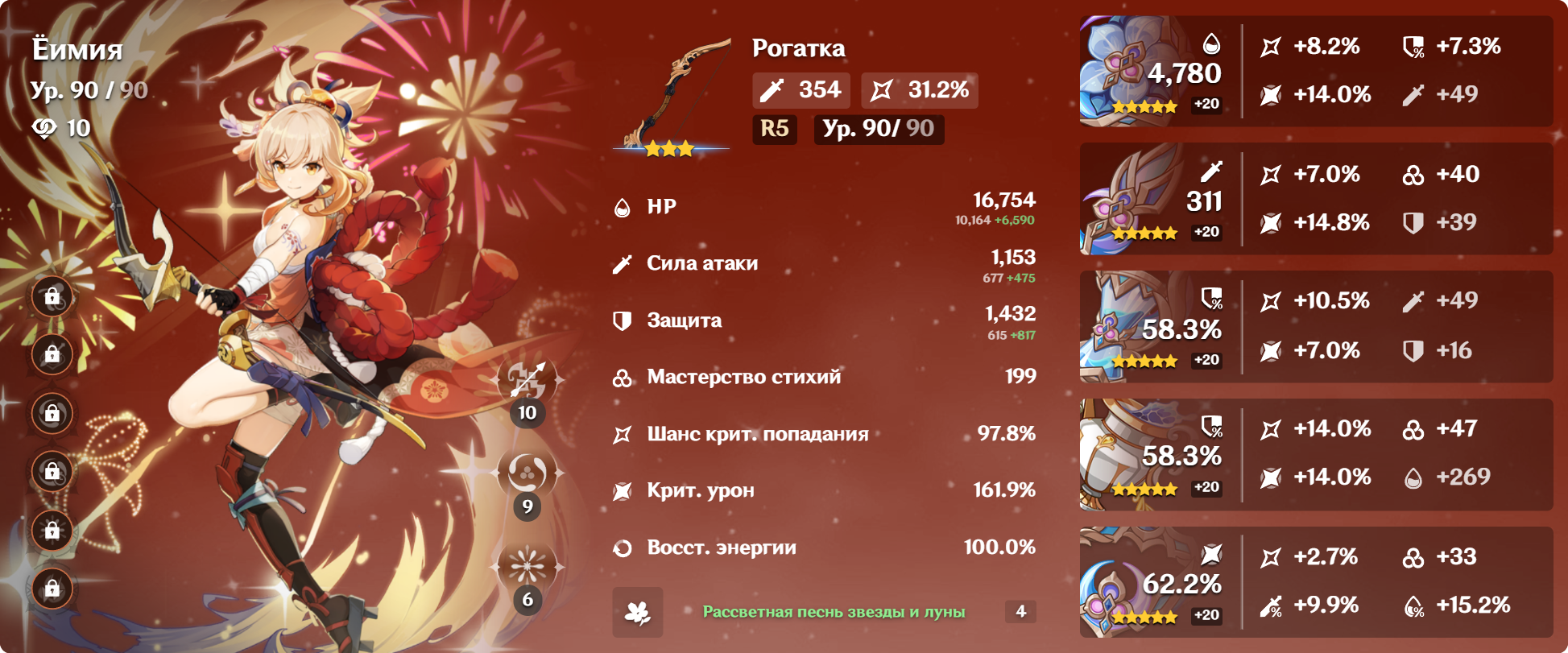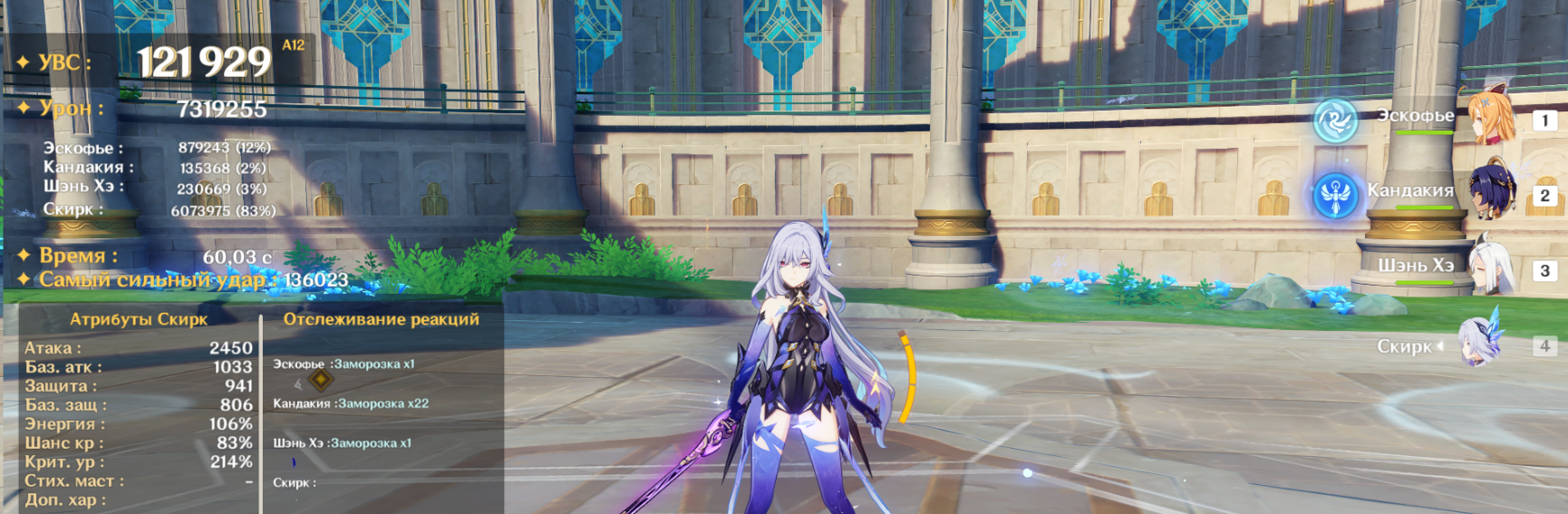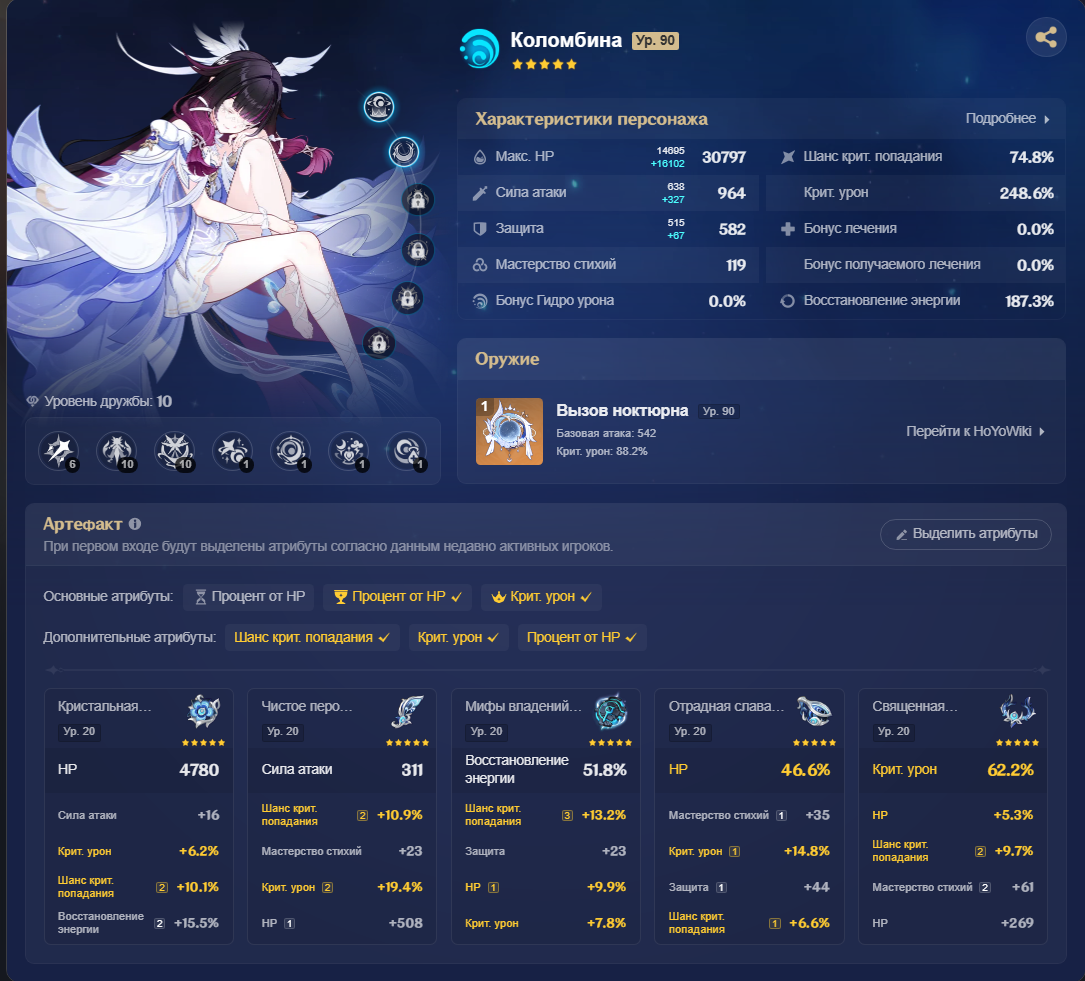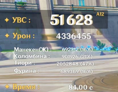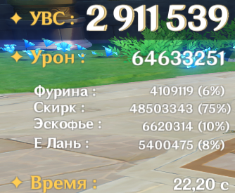Пытался исполнять ротацию Цзибай Columbine EQ - Illuga EQ - Gorou E - Zibai EE N2E Q E 2N4E - получалось 140к дпс. Плюнул и стал использовать как раньше ульту Горо и бить нормалами по необходимости - снова стало 150к.