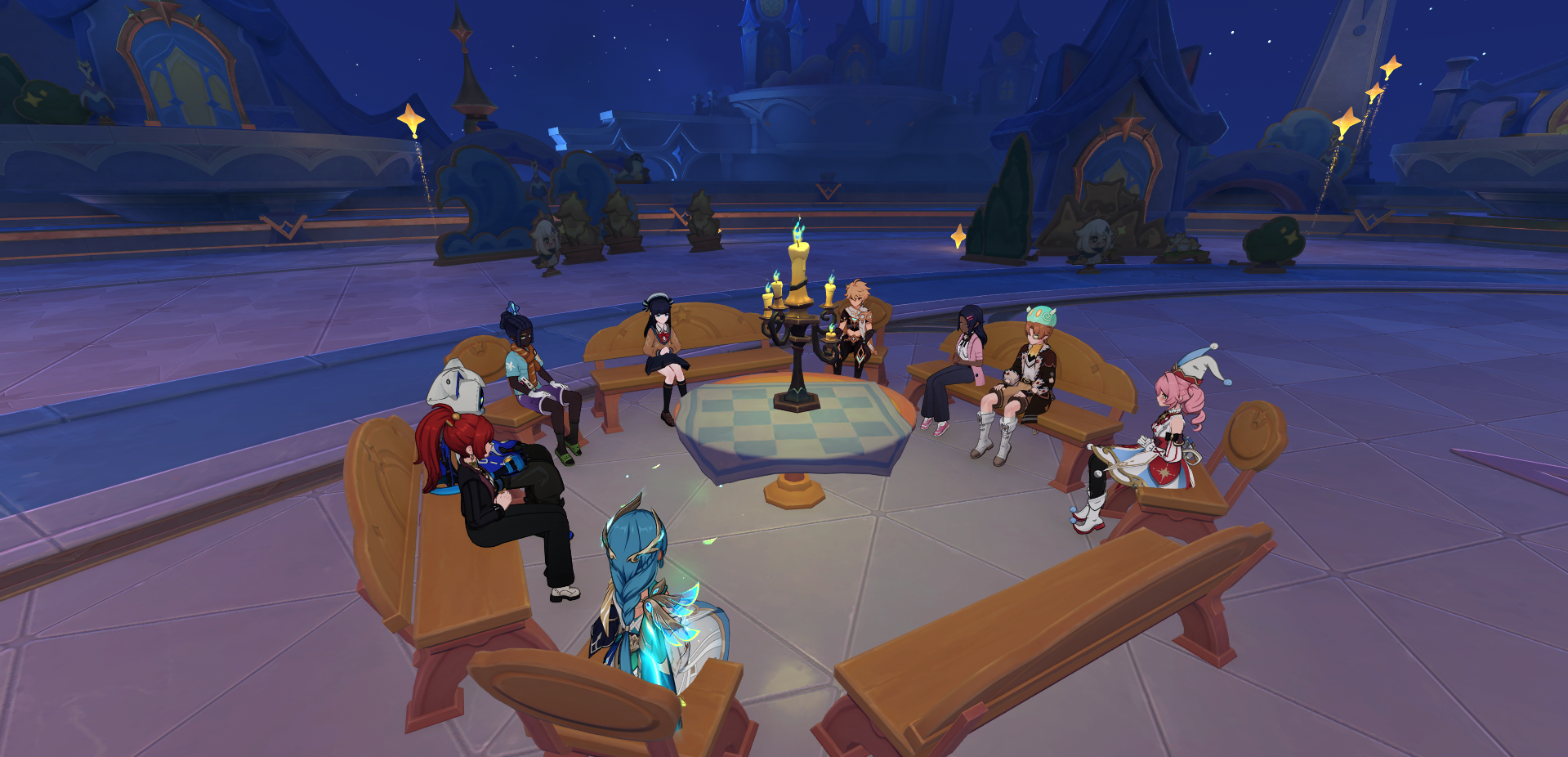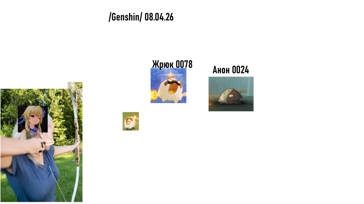 Мало идей Алтарей было, вот вам моя. Линея стоит и выцеливает тредовичков чтобы их поймать. (у неё исследовательская пассивка ловить животных) Тредовички отмечаются своей пикой ледовичка, пухленя грибовчика в общем любой живности Тейвата.