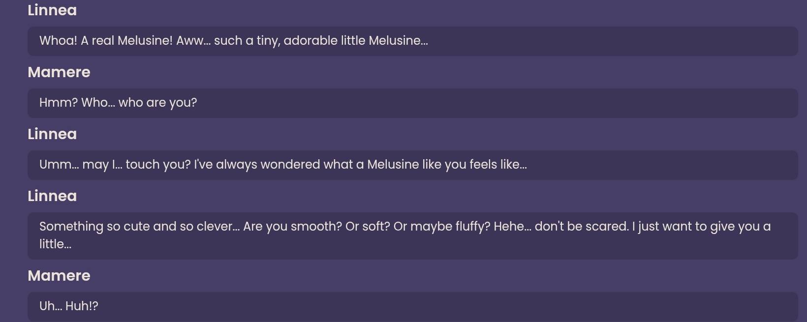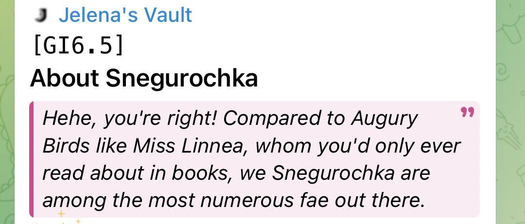 А вообще, охуенная тенденция в игре появилась с этими дополнительными приколами при выбитом персонаже. У Лаумы животные мирные и говорить с ними можно, у Айно с Инеффой косметика за болты, у Нефер с Ягодой целая цепочка квестов, у Кирилла с Иллугой свои фонарные приколы, у Варки отдельный "босс", у Цзы Бай колесницы по всему Ли Юэ и зонтик за дружбу. И вот сейчас у Линнеи будет косметика на рюкзак (сука, нахуя ей рюкзак, что она в нём носит, дура?). Круто, блин, жизнь в персонажах появляется, прикольчик свой. Кайфово.