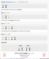 >>13594Ты охуел, черт? Ты ж в плюс играешь.ОП, расскажи немного, как ты учишься играть. Довольно лузово для таких лимитов. Такая агрессивная игра была бы более типична для нл25-50.
