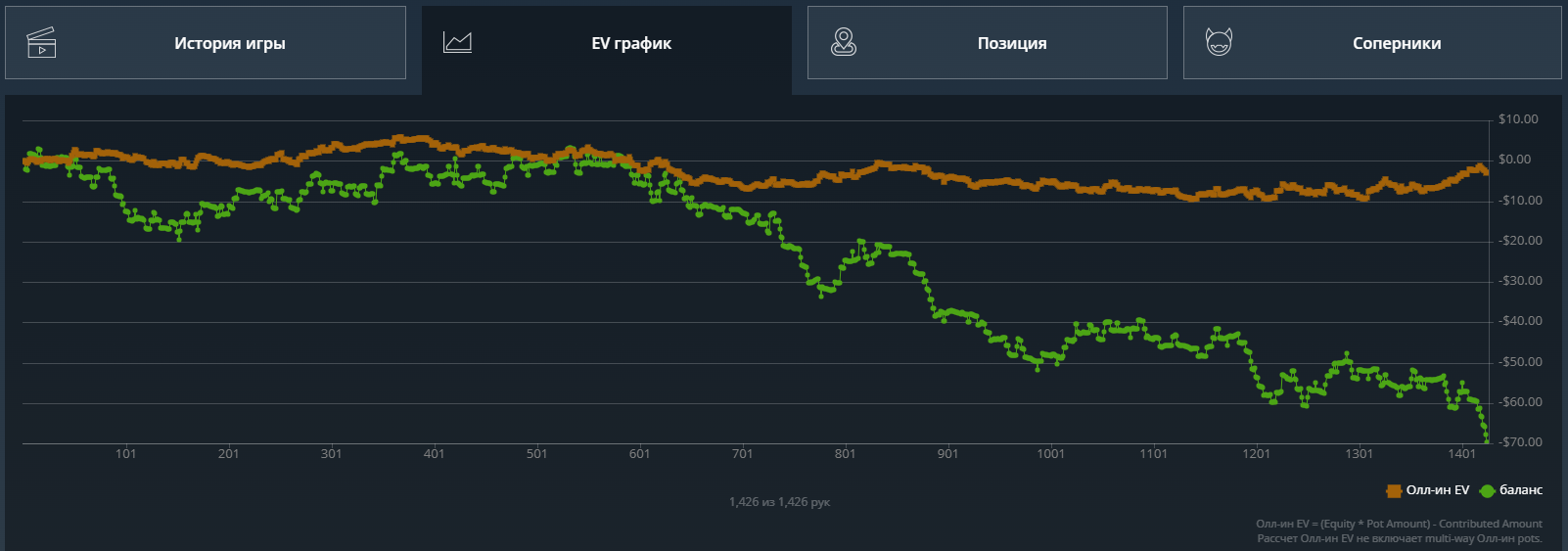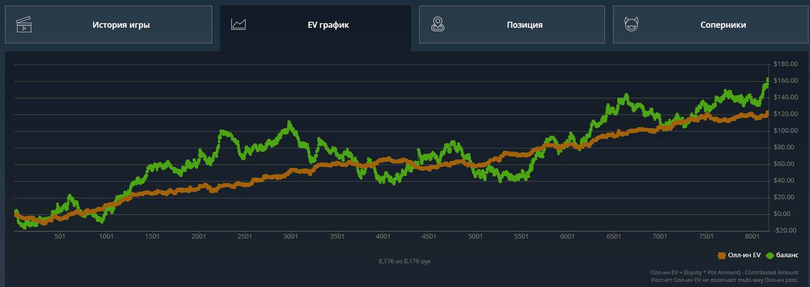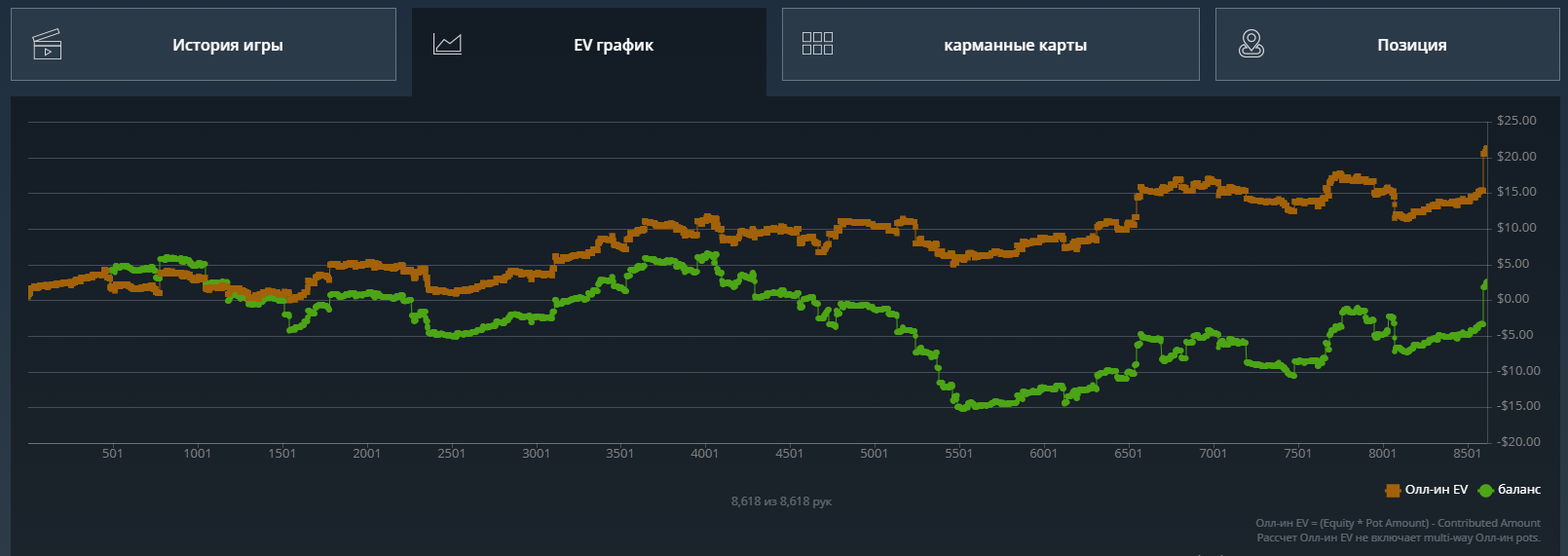 Какого-то хуя не могу нормально плюсануть по ev, 20$ за 8к рук это просто катастрофа из-за огромного рейка. Вроде ничего не менял в игре. Джек не выпал, по кассе -161.31