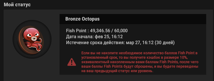 Хотя есть одна причина ещё немного играть AoF - это почти готовый приз Fish Buffet с ожиданием +183.2$. Осталось 10 дней, чтобы добить рейка, но на нл2 скорее всего не успею это сделать.