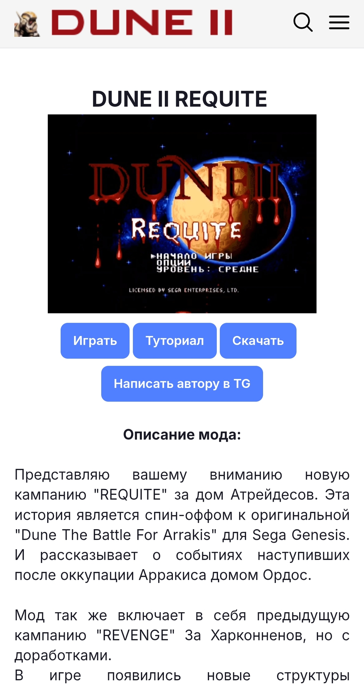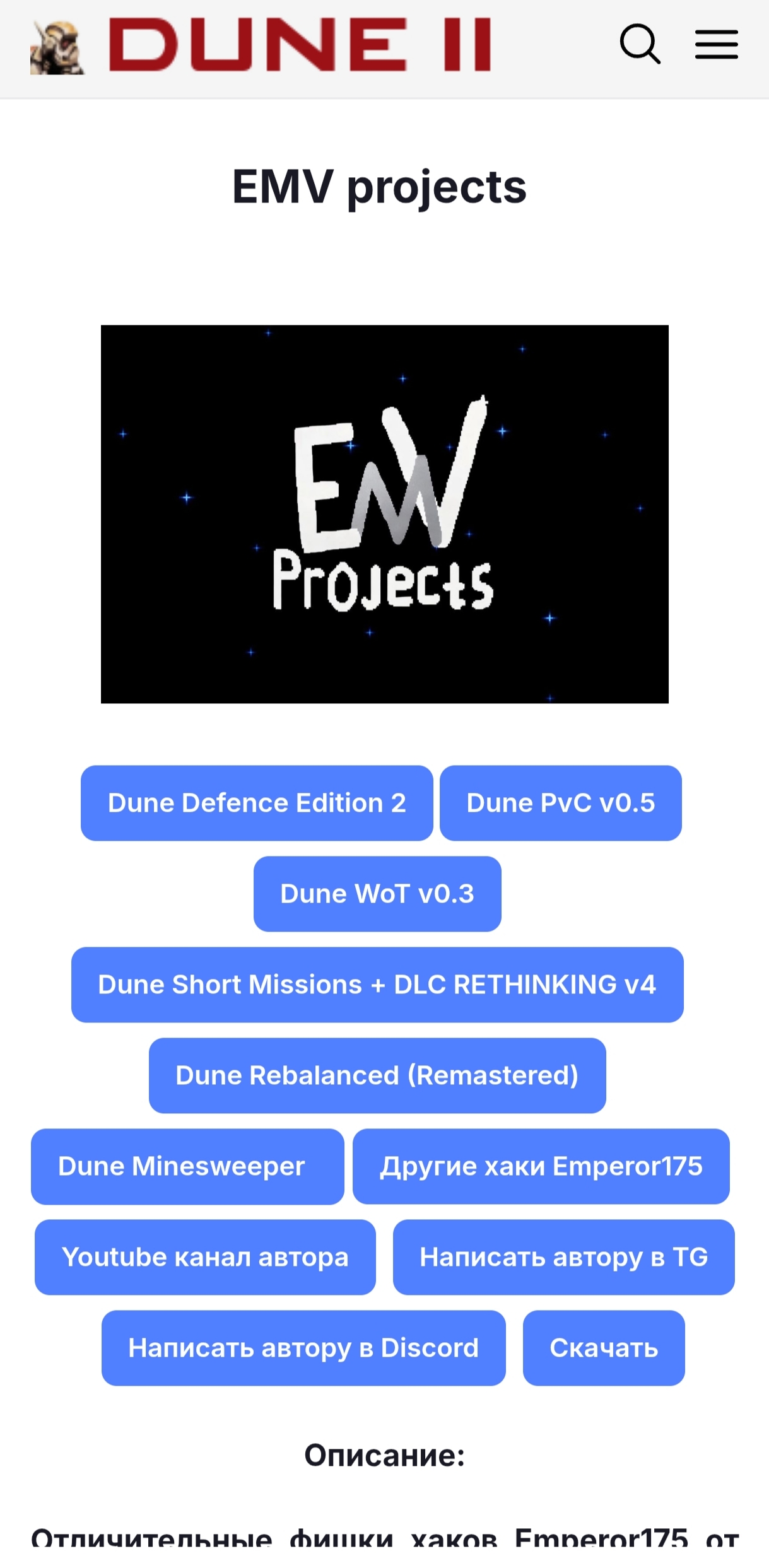 Сайт с браузерным эмулятором для хаков/модов Dune 2 the battle for arrakis smd. https://dune.clan.su/