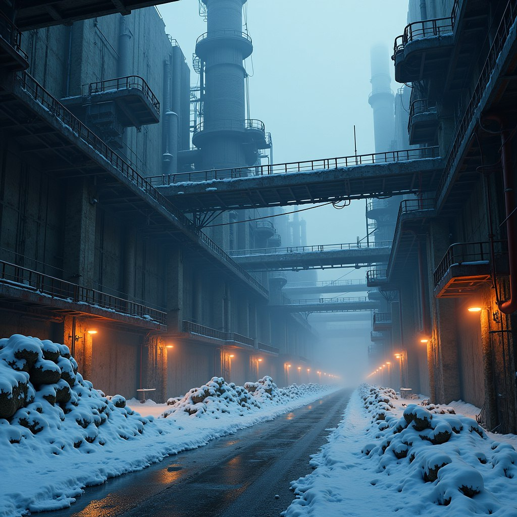 Концепция: В далеком будущем Земля погрузилась в вечную зиму после катастрофической ошибки в управлении климатом. Человечество выживает в огромных индустриальных мегаполисах, окруженных бескрайними снежными пустошами. Технологии смешаны с паровыми машинами, создавая уникальный snowpunk стиль.