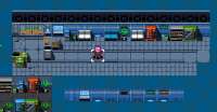 >>554915 Совершенно ужасная палитра, сложно распознать объекты, пиксельные тексты плохо читаются и плохо расположены. Плохой шрифт. Попробуй поставить что-то моношринное и без засечек. Нет внутренней рамки в панелях, мало пространства. Текст и иконки буквально липнут к краям. Не надо так. Можно сделать поменьше пиксели раза в два.
