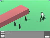Сделал полёт шмеля пуль. Вообще пули будут невидимыми, но пока что они видимые в целях тестирования. Суть в том, что при выстреле в зависимости от разных факторов считается вероятность попадания, и если выстрел успешный, то пуля посылается ровно в цель, а если нет, то с рандомным отклонением куда-нибудь мимо. Но если на её пути есть что-нибудь другое (например дорогой товарищ), то она даже при условно успешном выстреле попадёт в то, что первое подвернулось. Алсо прикрутил всплывающие циферки дамага при попаданиях.
