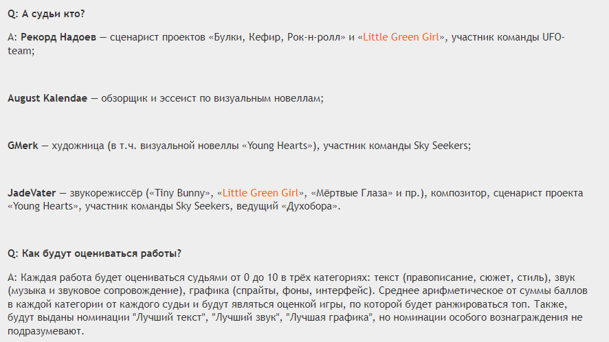 Ответы на вопросы и несколько мыслей от себя. По поводу таймингов конкурса - как показал первый OWG, недельный формат не очень заходит анонам. Я и сам не любитель коротких джемов, поэтому пока останемся в рамках классической длительности плюс доп дникоторых не будет. Решение начать 22 ноября не случайно - в этот день я выхожу в отпуск и хотел бы тем самым обеспечить свое более активное присутствие в треде, по сравнению с ОПами прошлых ТВГ. Ну и как один из конкалтент криейторов доски, больше внимания уделить развлечению вас(как участников, так и зрителей/вниманиеблядей), ибо "седня owg, седня праздник, сегодня в ебло получат мрази". Формат конкурса на данный момент технически идентичен ТВГ - неделя на демки, неделя на финалки. А вот все, что связано с темой, оцениванием и прочей "начинкой" - тут я хочу поэкспериментировать. На обдумывание всей системы есть еще три недели, поэтому вы свободны предлагать собственные идеи - возможно, они будут имплементированы.