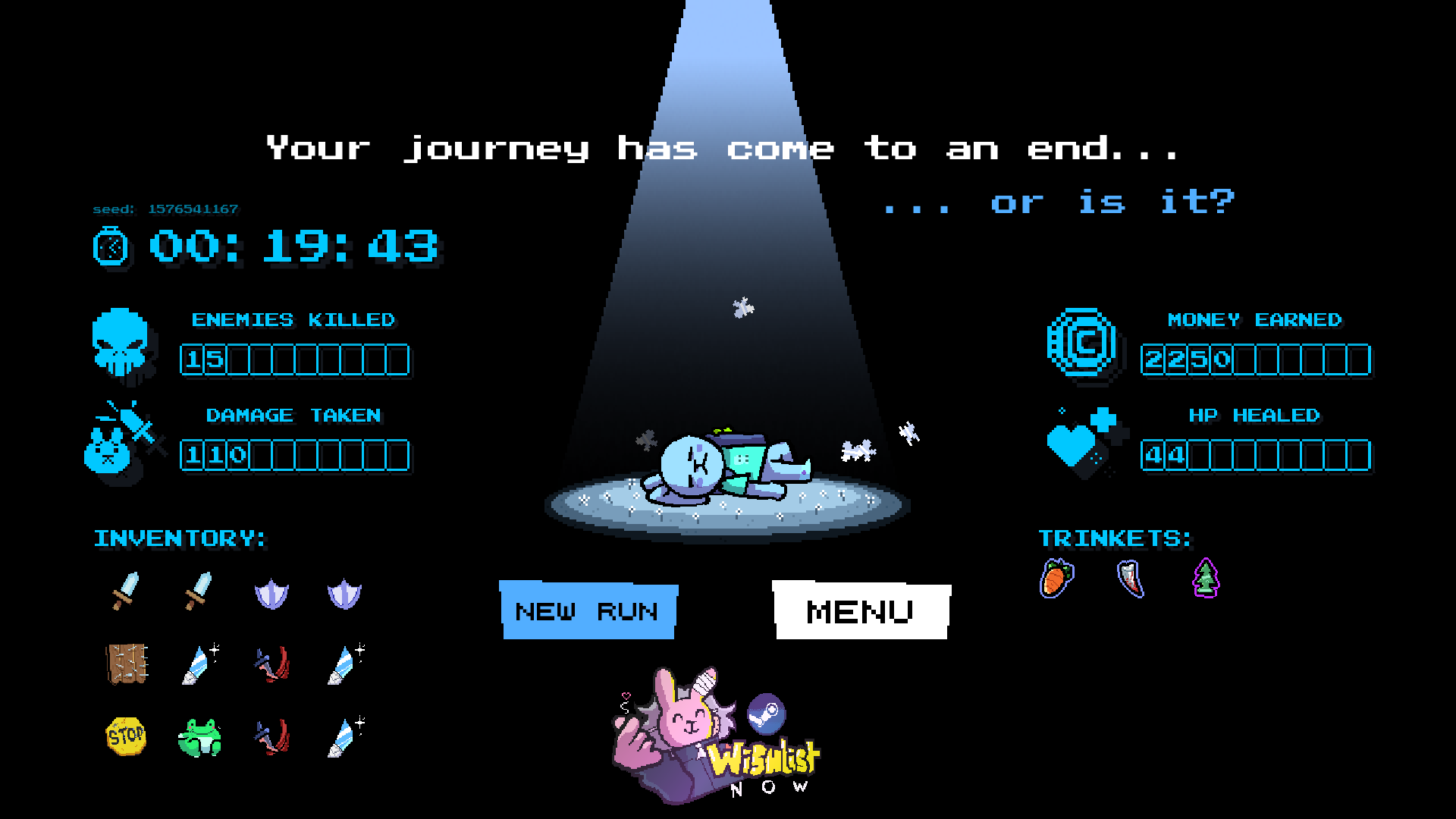 Игра не влезает на итче в окно. Неудобно, приходится кликать фуллскрин туда сюда. Видимо из за того что пытались пиксель перфект сохранить. Но на итче может быть стоит 0.5 или 0.75 разрешение сделать. Ведь в браузере только пол окна под контент, сверху вкладки снизу таскбар.
