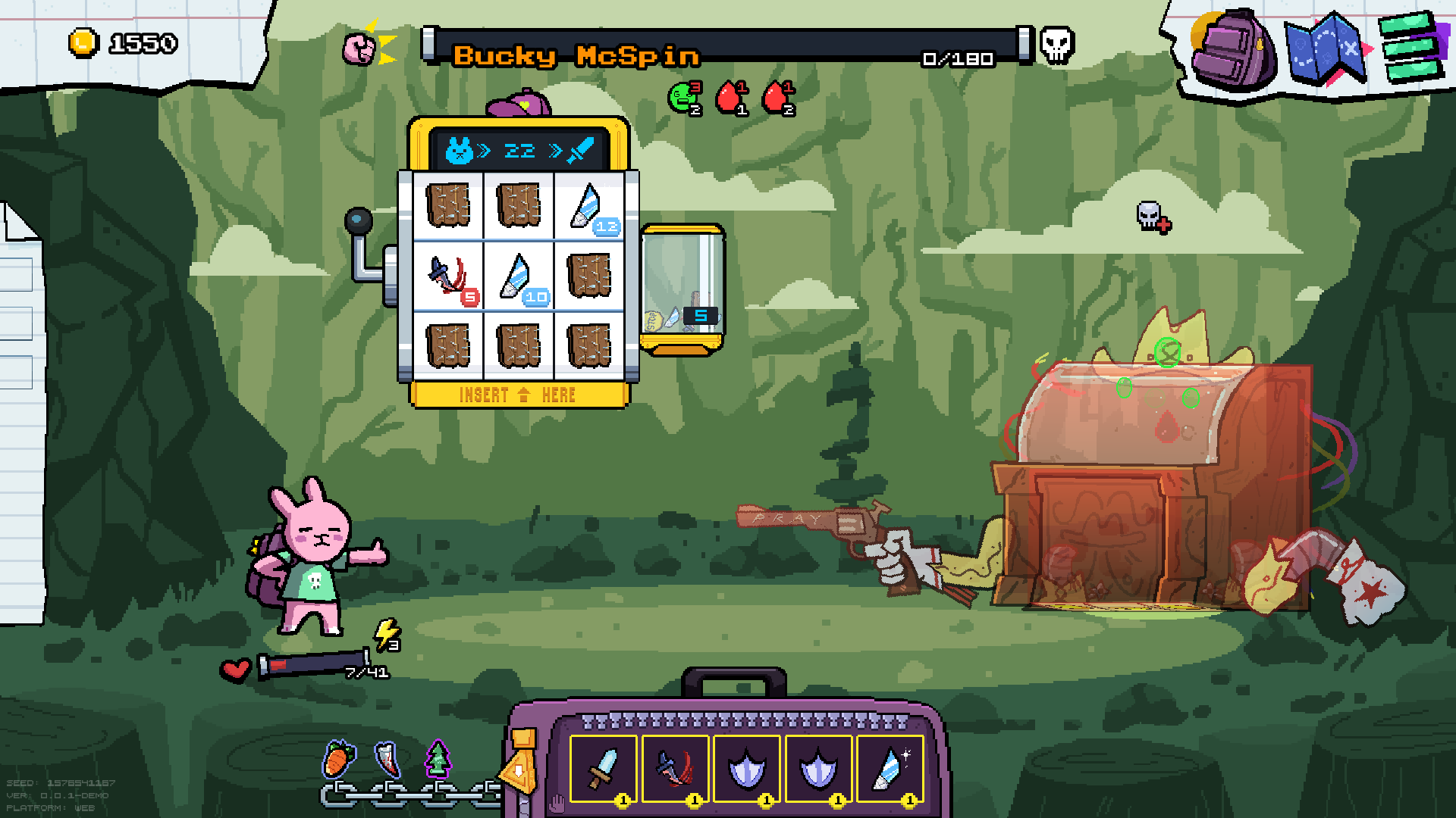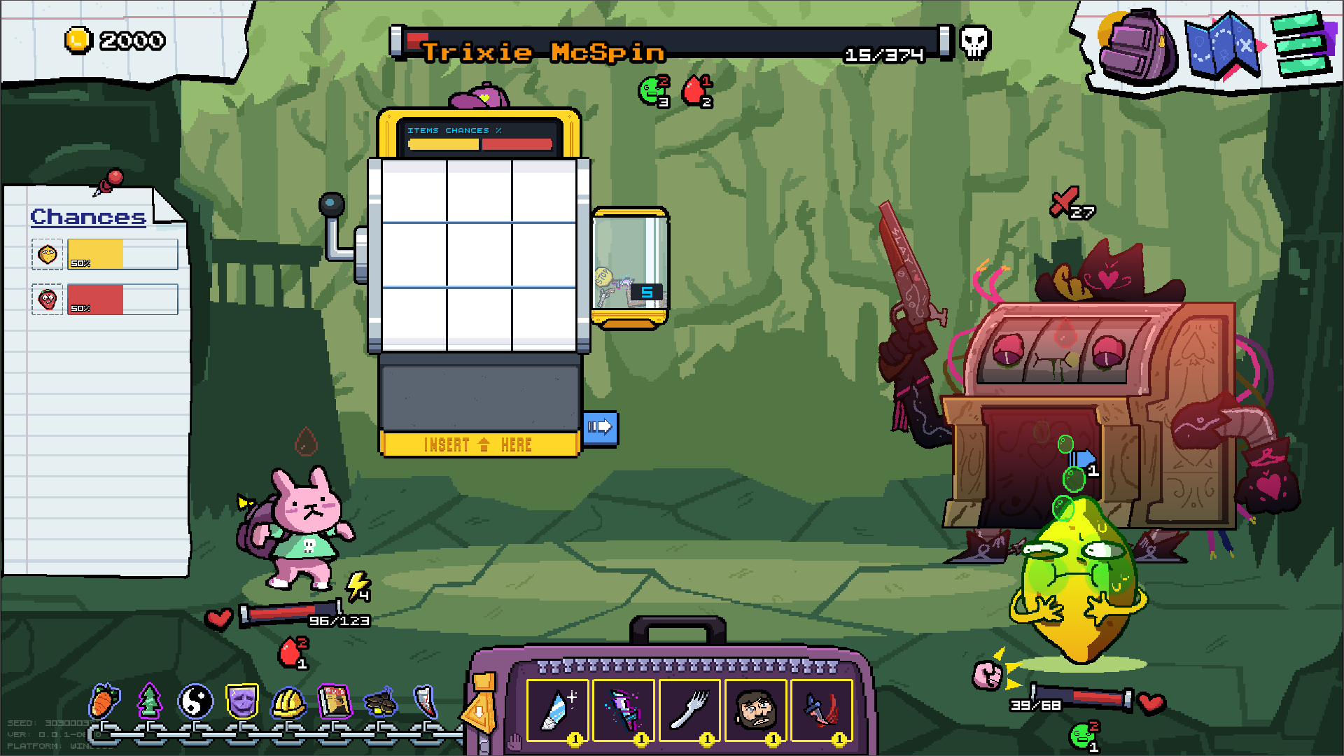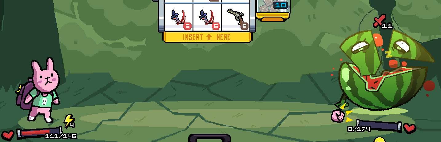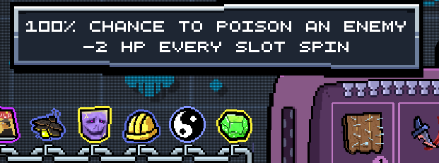 Игра - рогалик слот-машина, где ты закидывая вещи в боевую слот машину ты сражаешься с врагами.