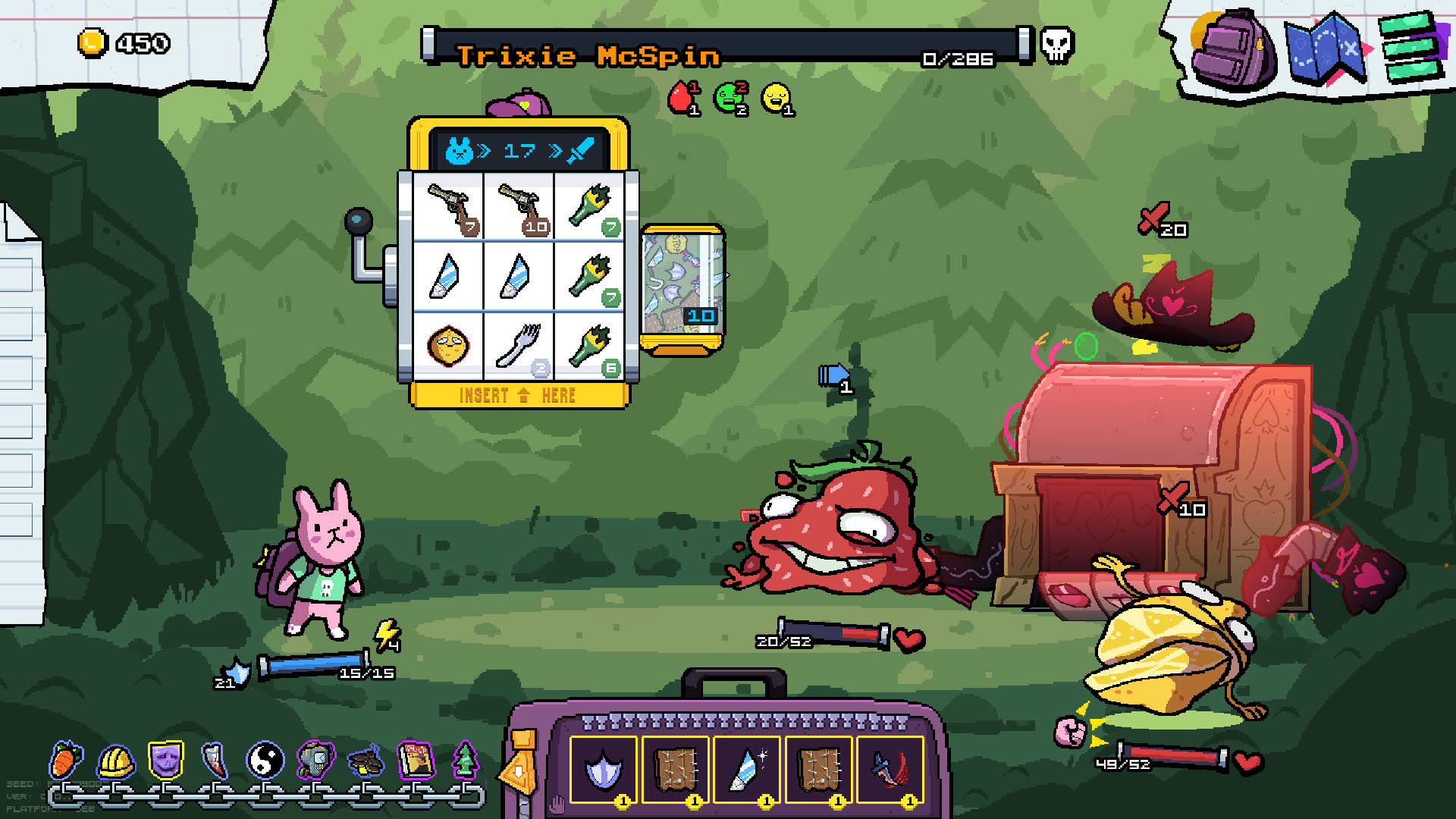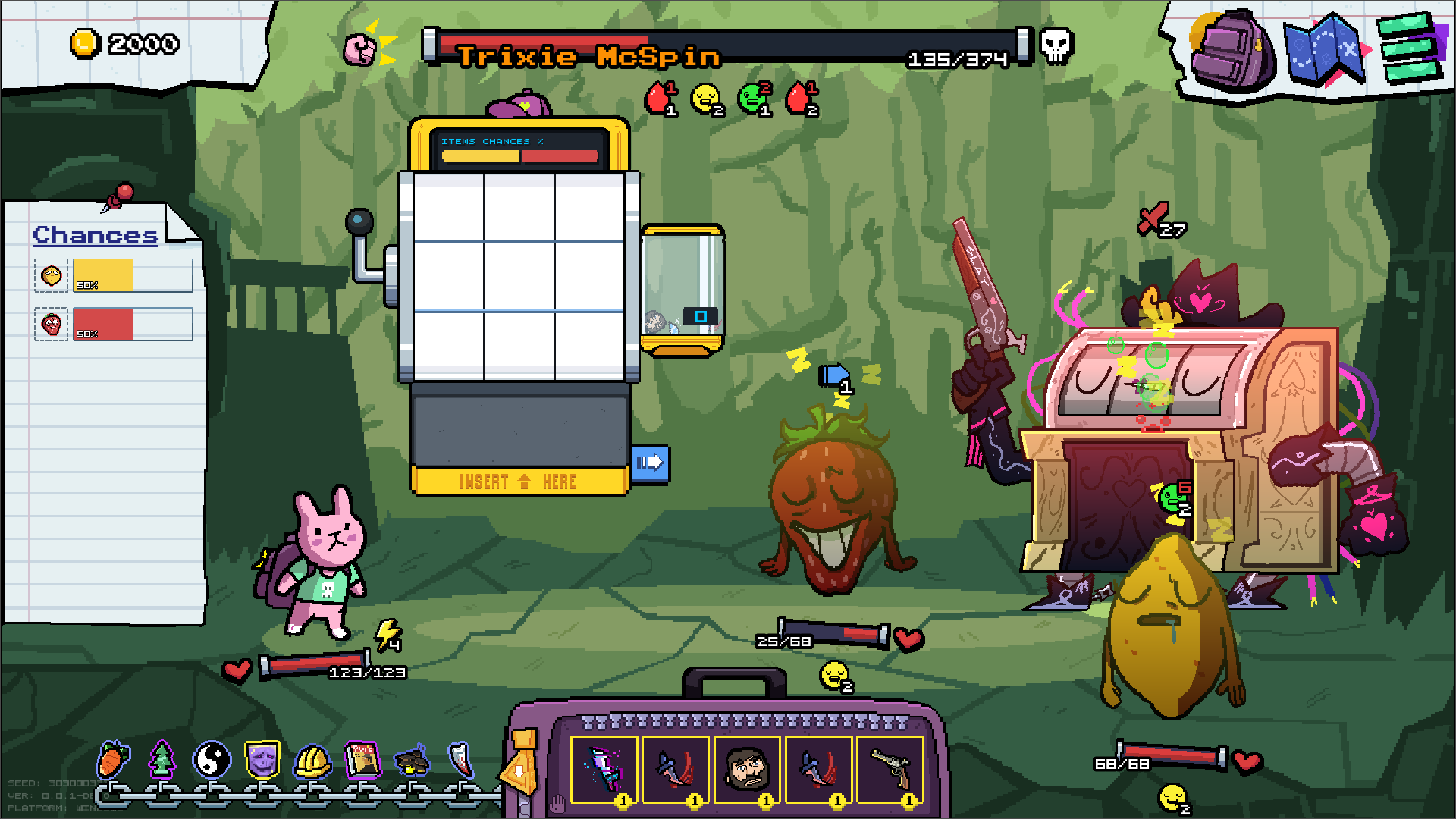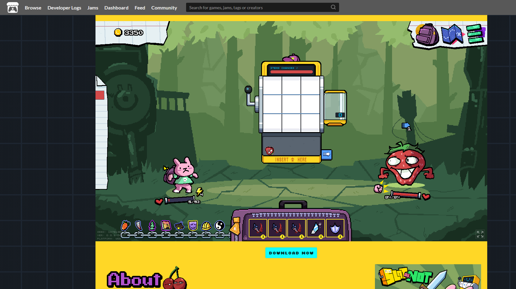 Игра - рогалик слот-машина, где ты закидывая вещи в боевую слот машину ты сражаешься с врагами.