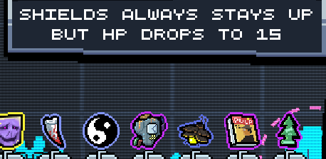 Было интересно, насколько тринкет замены хп на щиты вообще играбельный. Ну, при должном везении можно пройти, но конечно сложный. А если брать с ядовитым -2 в ход, наверное невозможный. За него напрашивается какой-то повышенный ревард. Вообще он сранный, я думал в нем хп так урезаны потому что щиты будут копиться и переноситься между боями. Но нет, в начале боя сбрасывается и начинает без щита. Тогда я решил жрать конфеты, и хп начали расти, стало 19, 21, я решил что смогу снова отожраться. Но оказалось тринкет и конфеты сбросил и хп в следующем бою 15.