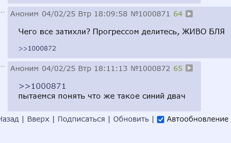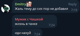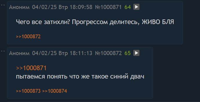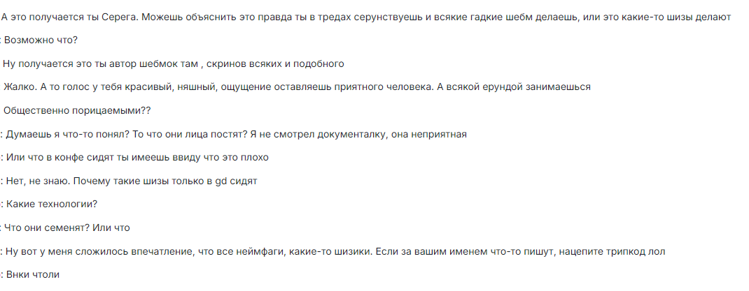 Кстати, раз мы опять скатились в обсуждение шизов, то могу посоветовать глянуть вчерашний стрим распидора где-то со второго часа записи. Буквально Тарантиновский диалог с ньюфагом, который решил разобраться в чём тут дело в /гд/, лол.