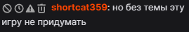 >>1001532 Единственный кого с гд банил, так это шорткэт если память не изменяет. Он был в бане на первом твитч акке, на текущем твитче никого вообще не банил из гдшеров, вон в чате даже пишет. А бан в тот раз он словил не за игру, а за сранье в чат, хотя не буду отрицать, что сранье было именно из-за игры.