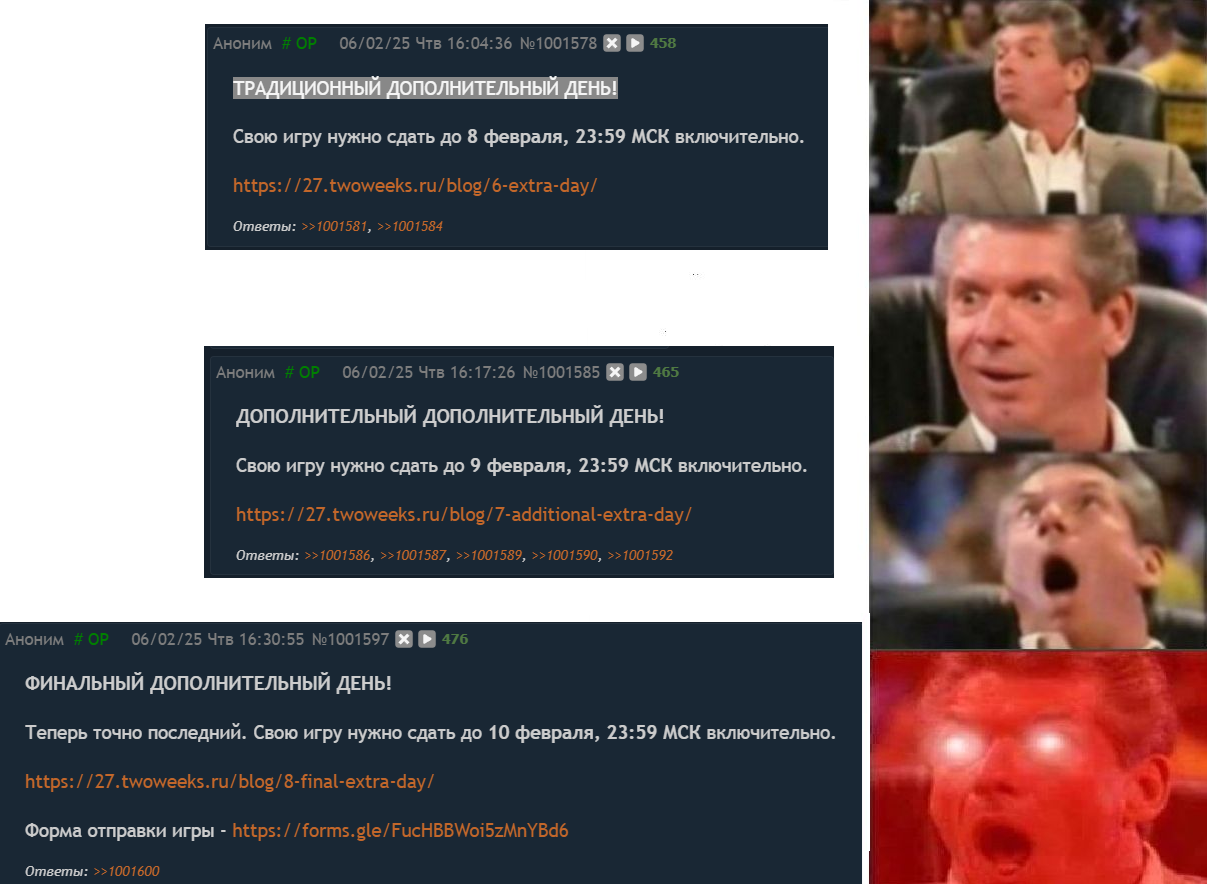 >>1001610 Обычно добавляют 1 день, а не 4. Я себе живо представляю эти торги в дискорде, как Димасик публикует пост, а нульчик ноет ему в ЛС, что не успеет, Димасик добавляет ещё день...