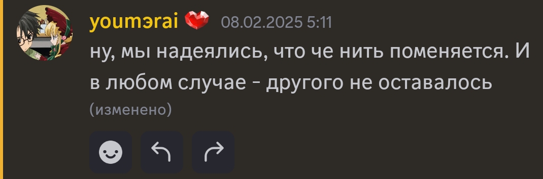 >>1000736 (OP) На связи Капитан Говард. Сижу на смене читаю вас. Еще завтра отработаю и после завтра за денёк доделаю игру, осталась кошкодевочку нарисовать. Мне всегда нравился момент перед здачей финалки, такой душевный подъём, зато после оценок, видешь что опять проебался в чем то. Но я уже привык, за больше десятка провальных игр вырабатывается имунитет и понимание, того что без провалов не бывает и побед. Сильный не тот кто не падает, а тот кто всегда поднимается.