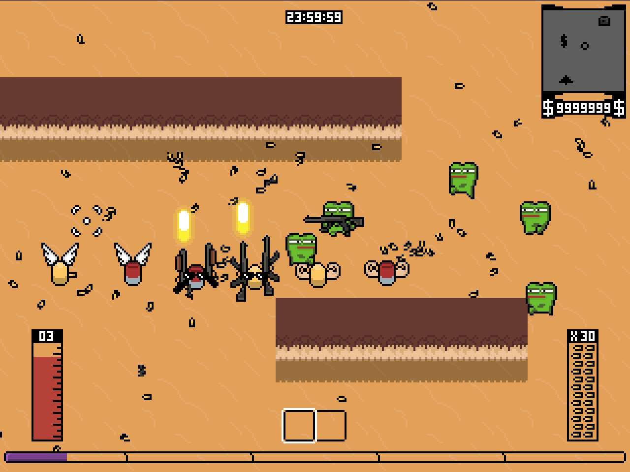 Апдейт моего говна: 1. Сделал брызги менее ебущими глаза. 2. Добавил медленно восполняющееся слоу-мо для каличей (но морковку, если использовал замедление для прохождения - не дают, так что и неосиляторы поиграть смогут, и доп. испытания для трайхардычей есть). 3. Патроны подбираются с большего расстояния, теперь мимо пролететь - надо постараться. 4. Добавил вентиляторы, которые действуют как джамп-платформы. 5. Добавил снаряды-пугачи, которые практически не наносят дамага на расстоянии, но толкают танк в сторону, куда смотрит дуло. 6. Добавил бронебойные-подкалиберные, которые наносят в десять раз больше урона, и в то же время подкидывают машину в воздух на небольшую высоту. 7. В общем апнул стабильность внутренней логики, всякие менюшки причесал и т.д. Но игры по-прежнему нет. Даже обучающие до конца не доделал. Хз, чё будет в финальной версии если Димас не даст один-два доп.дня по традиции. 28 лет-с нyльчика-кун