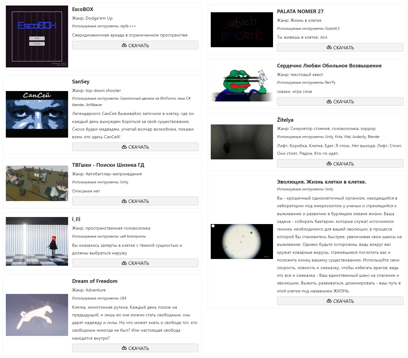 Digital Bondage Jailer Angels XXL EscoBOX Hoppa Teapot Еscape Vaulted Эхо лестничной клетки SanSey Life Crossing Dream of Freedom Сердечно Любви Обильное Возвышение Призрачный гопщик Žitelya PALATA NOMER 27 i_i!i Демонолог Degenerate: Now with 10% More Mayonnaise! Клетка хищника ТВГшки - Поиски Шизика ГД Escape from Kletka Эволюция. Жизнь клетки в клетке. Во все дыры Cube Cruising Crush The land of Sisyphus (Земли Сизифа) Мотоциклетка Aquarium Quest Робоклетка