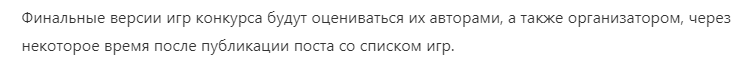Участникам даётся время поиграть во всё, или посмотреть стримы, до пятницы (14 февраля). Затем им на почты, с которых были отправлены финальные версии, будет отправлена форма для голосования, которое будет длиться ещё 2 дня.