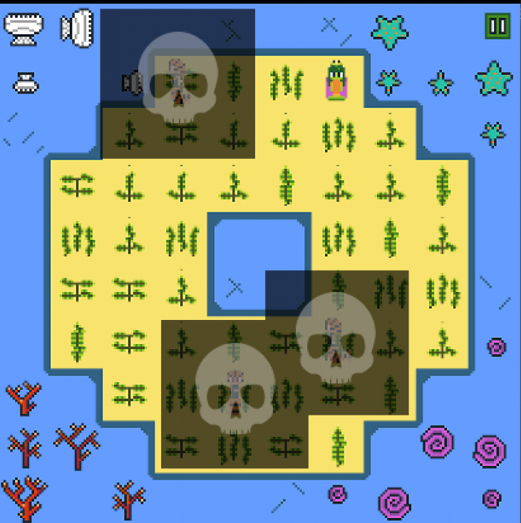 ты кстати дальше проходил? там появляются рыбки которые чарджатся в сторону игрока, при этом обнимают если ты на соседней клетке, и они так же случайно ходят, как и русалки, и 11 уровень вот такой, хорошо хоть бессмертие есть