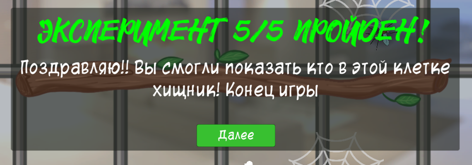 прошёл Клетка хищника оххх управление.... не мне не очень понравилось надо было сделать инверсию движение так, чтобы павук двигался туда, куда нажата кнопка действия, вверх - лезет вверх, влево - лезет влево, даже по потолку, особенно по потолку убрать инерцию, это же вроде как динамичная игра, в которой надо чётко следить за тем, где павук окажется в следующую секунду, а то хочешь полезть по дереву с левой стороны клетки вверх - паук отцепляется, улетает хрен знает куда (в огонь), ты пытаешься начать куда-то ползти, это оказывается не то направление, паук падает (тоже в огонь), умирает если вися на паутине нельзя стрелять паутиной, то почему бы не сделать, чтобы павук держался на паутине, только пока держишь лкм, и отцеплялся, когда отпускаешь лкм? и если просто кликаешь, то он только стреляет? а то хочешь стрельнуть в муху, промахиваешься, паутина цепляется за экраном к чему-то, паук цепляется к паутине и улетает нахуй (в огонь)