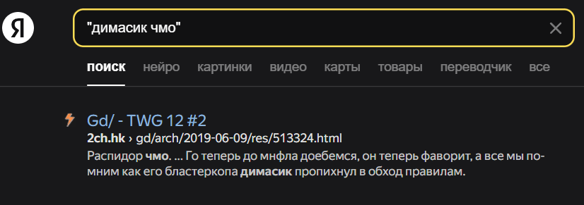 >>1004590 Ну не знаю, не звучит. Все уже привыкли к фразе "димасик чмо", в общественном сознании она закрепилась форсом. А так получается перефорс уровня "нет это расп чмо". Как то по детски.