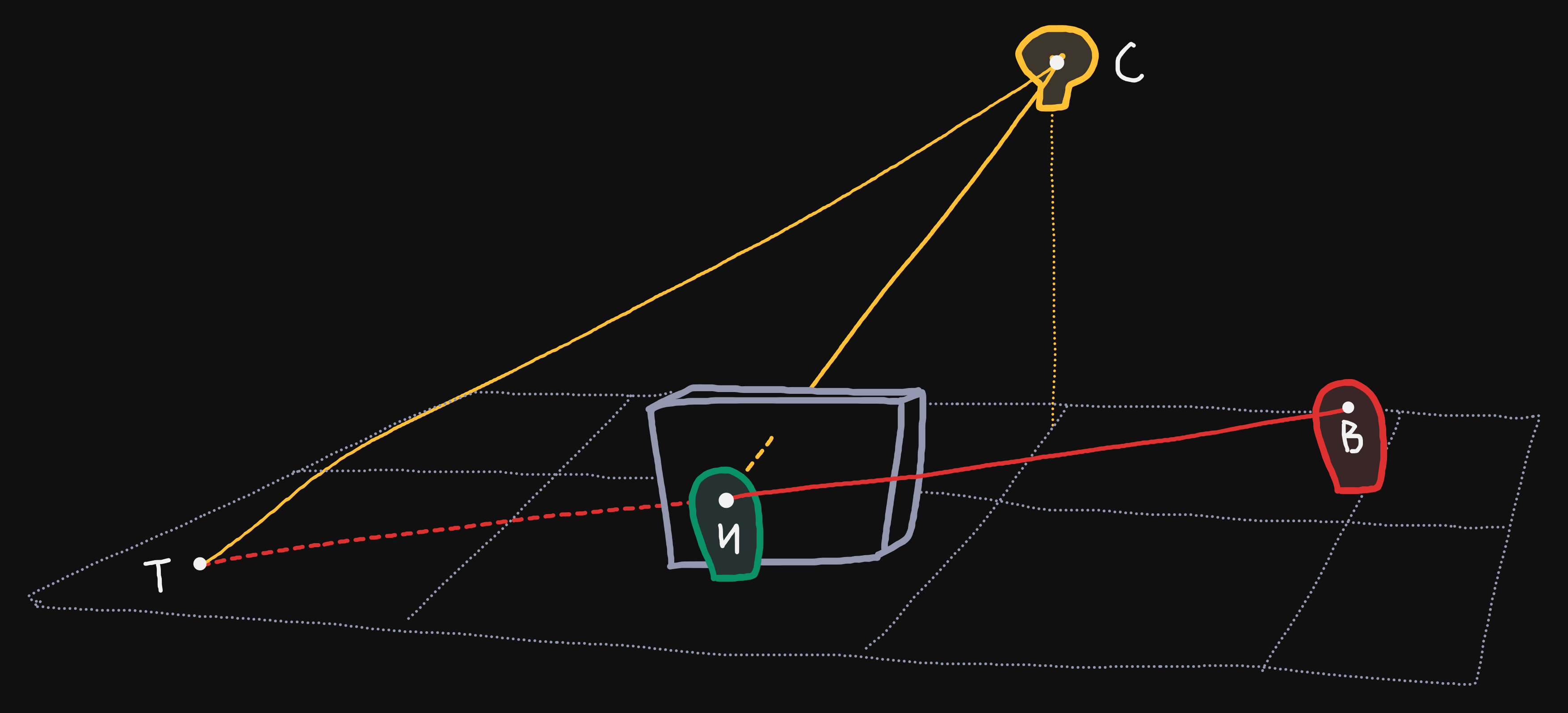 >>1021998 >>1022123 Я сейчас подумал, что можно поступить проще. Можно сравнивать финальные (затенённые) цвета игрока и меша за ним. Но я сегодня усталь. Если кто-то мне напишет, можно ли и как получить финальный цвет пикселя через рейкаст, я буду благодарен