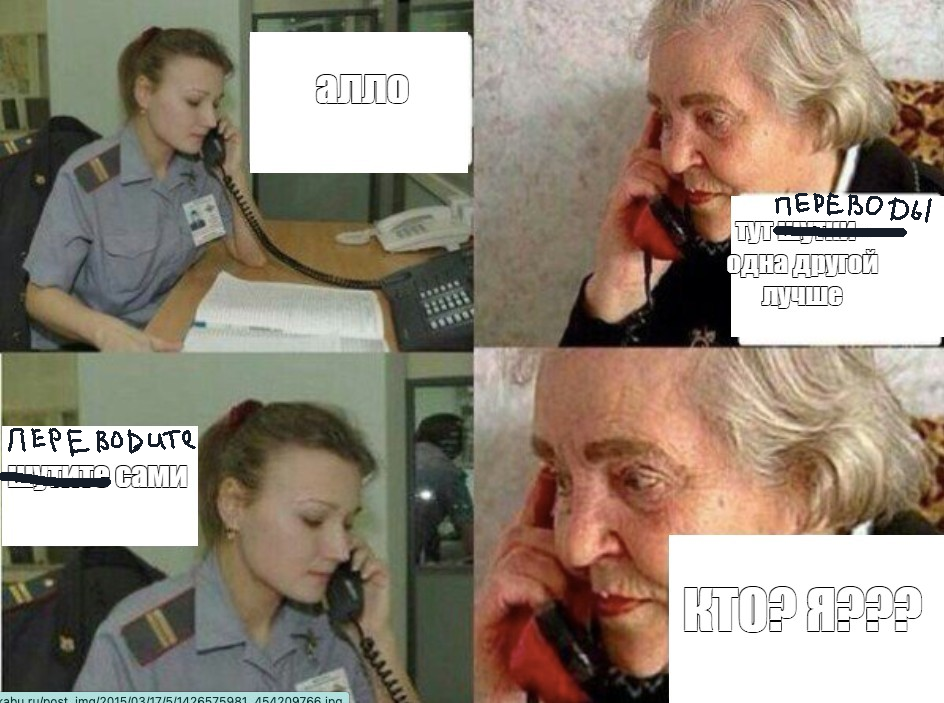 >>1017993 >А это важно? Важно что? Тебе не пришла в голову простая мысль, что он мог быть переводчиком стихов с французского, а не переводчиком тех документации годота? >Заигнорю И чего ж не заигнорил? >Ты не поверишь, но всем насрать на тебя Не поверю. Ты так бежал за мной по треду чтобы сказать об этом. >Мы обсуждаем конкретный пример про перевод. Эти вы все еще у тебя под кроватью? >>Иди и переводи >Спасибо, было очень интересно с тобой поговорить Почему ты меняешь тему, вместо того чтобы идти и переводить самому? Ты бы уже страницы три перевел. Это же стыдно что ты до сих пор ничего не перевел.