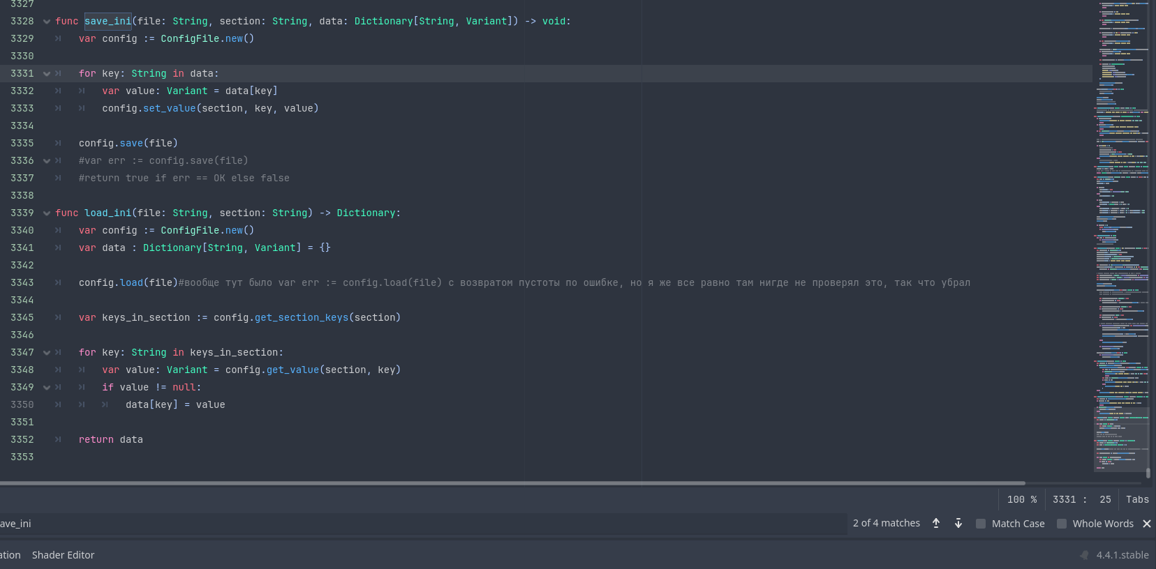 Есть у меня функция save_ini (пикрелейтед), и есть переменная: var saved_copies: Array[Variant] (по факту это Array[Array[int], но нестед тайпед коллекшнс ар нот суппортед блять)