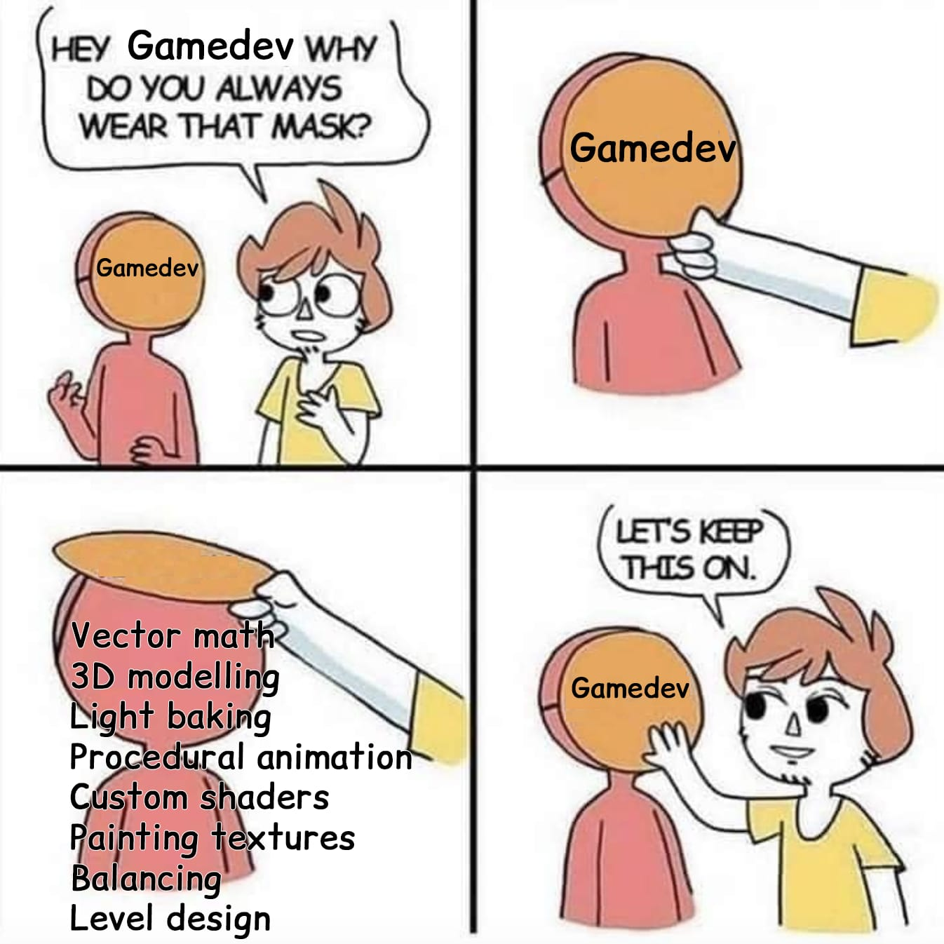 делал проект на годоте, подредачил сцену, пошли жалобы мол вон там нал вместо объекта, хотя я блять вообще в другом месте кусок удалил. затриггерило жестко. забил хуй. спустя неделю (щас) опять запустил. чтобы войти в контекст опять эту сцену запустил. БАЦ. запустилась. ну пиздец. ну что это? самое поганое, что это касается и юнити, и уж тем более анрила. прогеры пишут херовое, а мне токо хавать остается. фуух, ладно. пиздец какой-то.