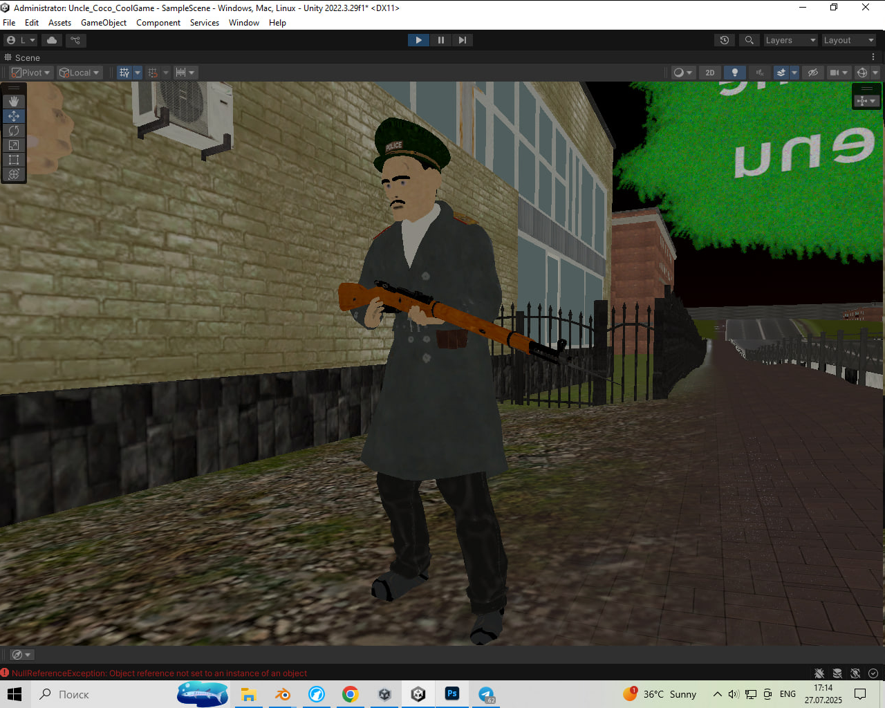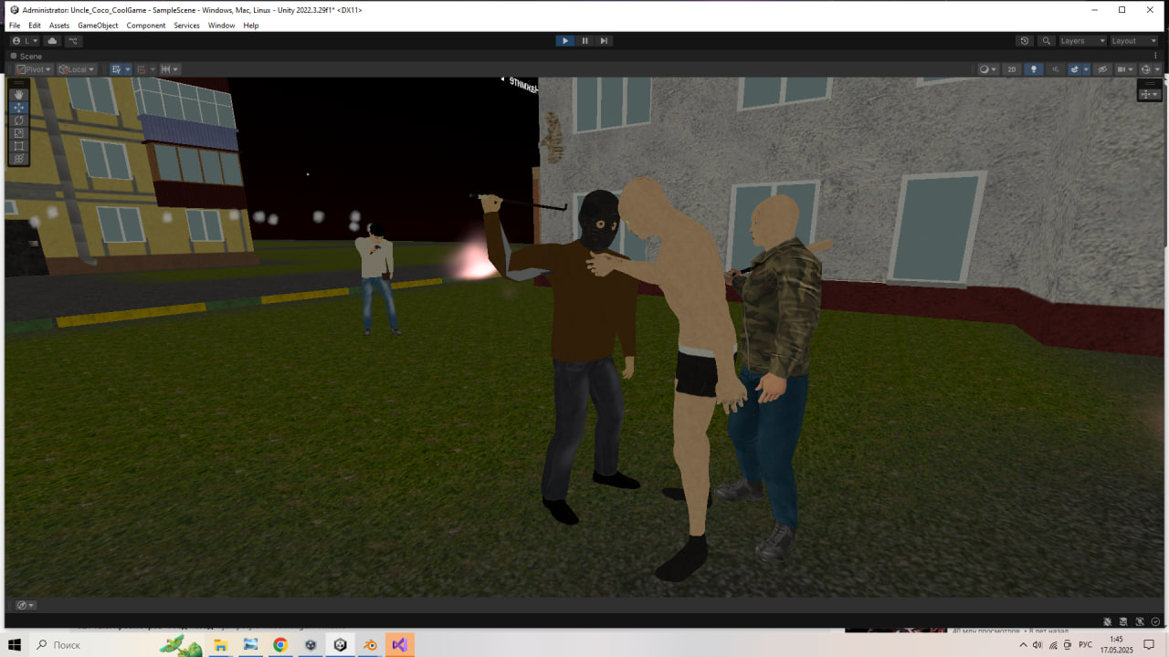 >>1020614 >>1020617 Всё будет, главное не раскачивать лодку и не дестабилизировать ситуацию. Со светом над будет поиграться, а то пока контраста прям мало. Однако в моём случае сложности добавляет то, что у меня реализована смена дня и ночи. По стилю я в целом определился, назову его "грязный реализм". Во сейчас делаю гопника с битой, а гопник с СПШ пока подождёт, лучше сначала сделать годный скрипт под рукопашных врагов