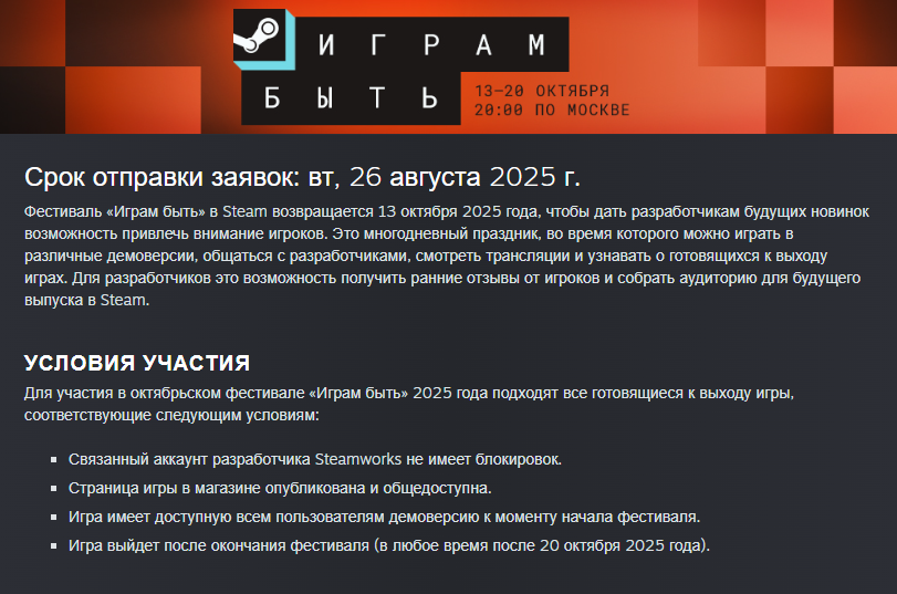 Да даже если и выкладываю - там полтора землекопа, половина из которых демку не скачала. Я же не буду отказываться от трафика стима. Когда-нибудь этот фильтр перестанет иметь значение. Габен сам говорил - осваивайте ии, глупцы. Чтобы не оказаться за бортом.