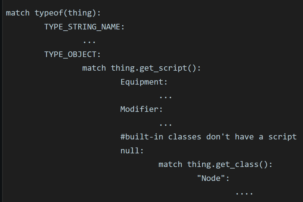 >>1023159 Чтобы любители всё делать кодом делали предлагаемый функционал через код, и не требовалось создавать ноды, которые не будут добавлены в дерево, потому что "создал - сделал - высвободил". Для этого будет рефкласс. Для любителей же настроить ноды в инспекторе будут ноды-обёртки, которые красиво расставляются в сцене, имеют свои иконки и прочие свистоперделки.