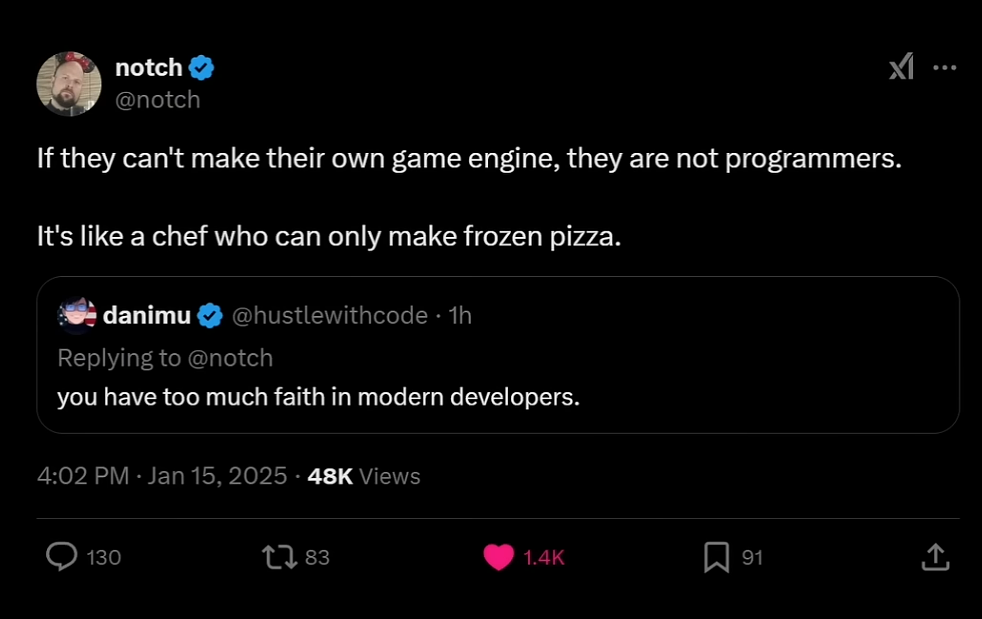 >>1022091 Я просто боюсь еще краха видеоигровой индустрии на манер как в 1983 году, когда полки наводнили низкокачественные поделки и всех это остоебенило ,что перестали покупать игры. Так и сейчас с развитием ИИ, каждый идиот или компания идиотов начнут тонны высирать низкокачественного кала, что все цифровые магазины утонут в нем и людям надоедят игры как таковые? Копаться среди тонны кала, чтобы найти хоть что-то нормальное. Если я начну сейчас усиленно изучать годо и пытаться выпустить что-то сносное уйдет минимум лет пять у меня. Не умрет ли индустрия от ИИ к тому времени?