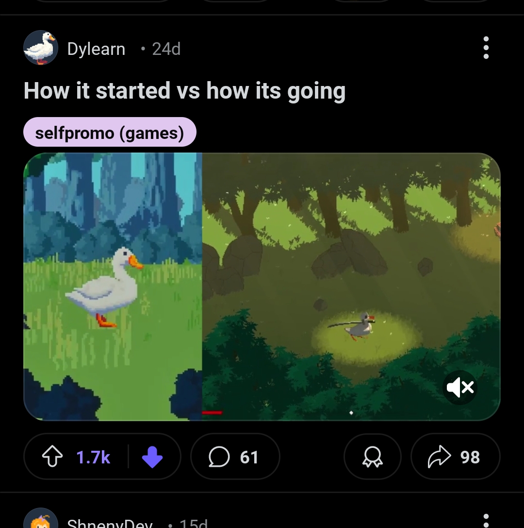Открыл r/godot посмотреть на поделки других людей, отсортировал по топ постам за последний месяц, а там по факту нет игр. Почему-то артисты решили, что они теперь геймдевы и только тем и занимаются, что рисуют пиксельные спрайты и тыкают их тайлмапом в одной и той же сцене пять лет подряд. А ИГРУ кто будет делать? Или геймплей не нужен, главное чтобы утка красиво по экрану перемещалась? Как называется этот синдром?