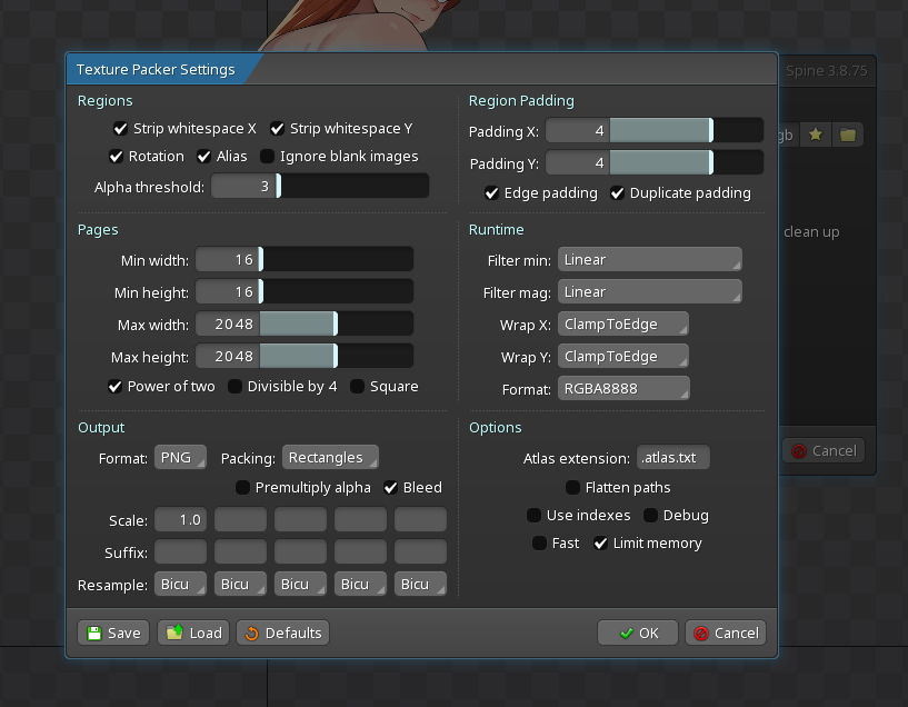 Экспорирую в json (пик 1). Вторая картинка - настройка пака, тут я на юнити ориентировался.