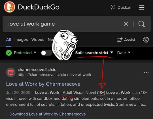 >>1048886 А зачем вы в стим идете? Порно же там нету. Я вот щас решил посмотреть порноигры какие там и тупо проебал 15 минут кликая по менюшкам, нигде же нету adult тега втф? Я думал как на итче будет легко. Нашел максимум аниме жанр и в самом низу фильтры блять и то там нету нигде adult. Короче порно я так и не нашел, а значит обычный юзер и подавно не найдет. Тупо -аудитория же. Стим скрыл походу все теги чтоб найти нельзя было? Я же помню порно в стиме релизили, но не найти никак. Походу вам надо обрезанную версию sfw постить чтоб среди обычных игр была