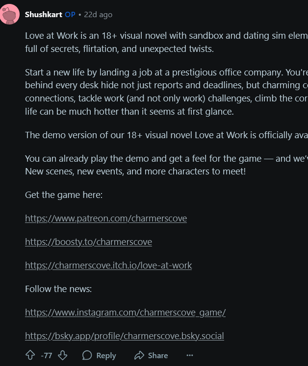 А еще есть то что точно повышает вероятность - контент, стабильность обновлений и фетиши. С аи слопом эти факторы проще максимизировать.