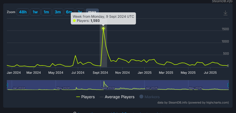 >>1028098 > Я не говорил, что он останется с одной продажей. а жаль, сошел бы за умного. один безигорный спорит с другим ну и кринж первый день после релиза на итче всегда самый прибыльный, дальше уже нихуя не будет. если игра хотя бы $800 не сделала пока ты спал после релиза, то это гг просто делаешь новую игру. за пару месяцев хоть одна игра должна выстрелить если не лениться. ничего сложного так потом и на 2к выходишь (и это всего лишь только итч) и всё дальше и дальше. удачи разрабу короче