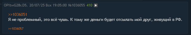 >>1036296 Какая нахуй разница кому был ответ, сам факт того что оп порватый либерашка, а деньги будет отправлять его друг говорит о том что денег уже давно нет.