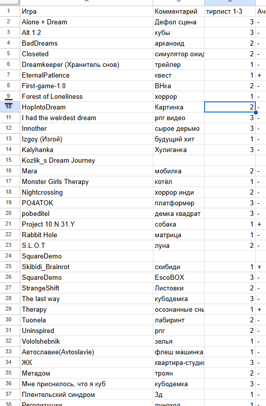пока что топчик из того что показывали (делаю выводы только по стриму): First Game - приятная внка Изгой - приятный survival Mara - приятная игра в стиле мобилок Therapy - прикольная бродилка Среднячки: Monster Girls Therapy - неплохое поделине в стиле РПГ мейкер Uninspired - еще одно неплохое поделие аля РПГ мейкер