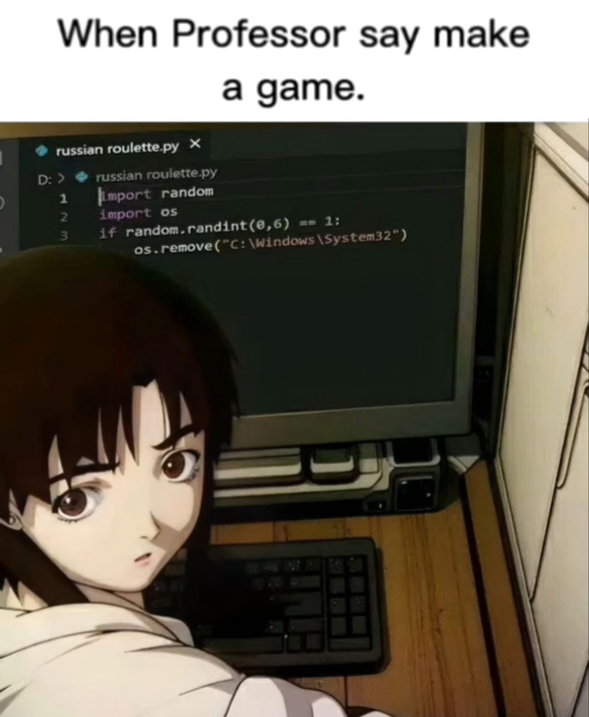 >>1039682 вроде на выбор да >>1039683 я имел в виду не ту игру с прошлого сон собаки, а приём сон собаки на этом твг, когда сделают игру совершенно не по теме и скажут что то типа >это всё был сон собаки >игрок один значит игра про одиночество за такое по моему мнению должны ставить низший балл за раскрытие темы, это полная халтура