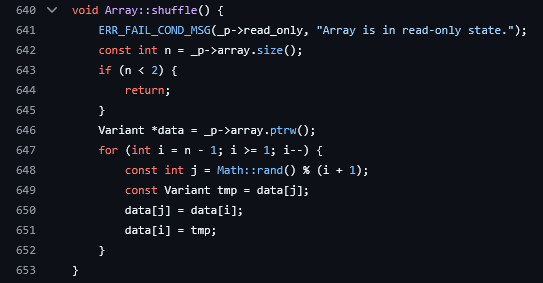 >>1048863 > в сложных моментах можно залезть в сорцы и разобраться Двачую. Вот из недавнего, прямо ИТТ аноны залезли в сорцы и посмотрели, как у Хуана реализовано перемешивание массива: >>1047430>>1047602