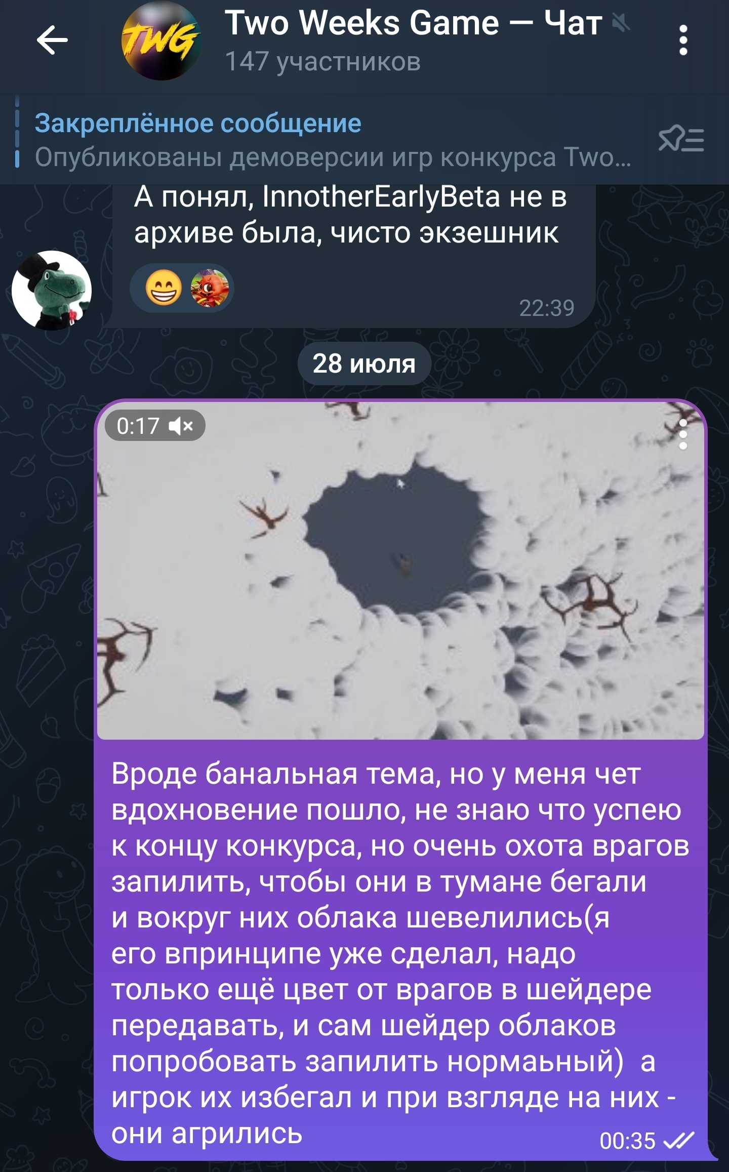 На самом деле я уже на последнмх твг, перестал подготавливать демки. Время уходит на билд почти день, а стримеры смотгят секунд 15